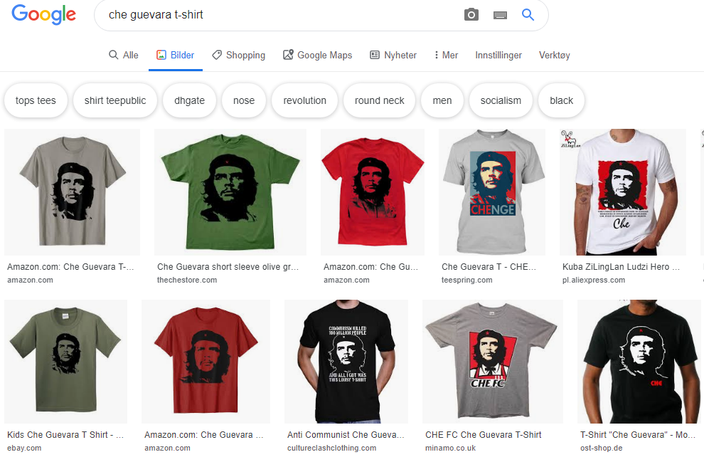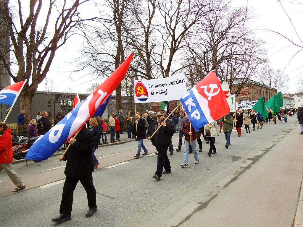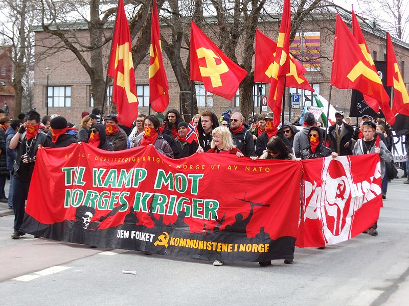 Ser man imidlertid til store arrangement som 1. mai-togene, offentlige møter på torg for fagforeninger som LO eller demonstrasjoner fra rene kommunistiske organisasjoner, så har ingen reaksjon kommet på vaiende flagg med sigd og hammer, eller klare kommunistiske paroler og symboler. Det er i tillegg lov å selge flagg, t-skjorter og ulike artikler med blant annet massemordere som Che Guevara, Lenin og Mao som motiver i norske butikker over hele landet.