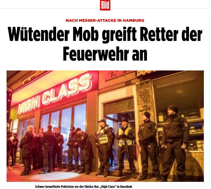Men røyken fra nyttårsrakettene har knapt forsvunnet fra himmelen før det kommer nye meldinger fra det flerkulturelle drømmesamfunnet vårt. Det viser seg at et drapsforsøk ved en arabisk nattklubb i den tyske havnebyen Hamburg kom helt ut av kontroll.